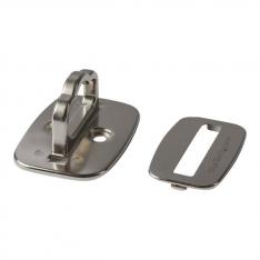 Fabricado en **acero sólido**, este anclaje está pensado para proporcionar una sujeción duradera sin ocupar demasiado espacio. Su diseño discreto en color **plata** combina fácilmente con el entorno y se adapta a diferentes ubicaciones gracias a sus dimensiones contenidas.