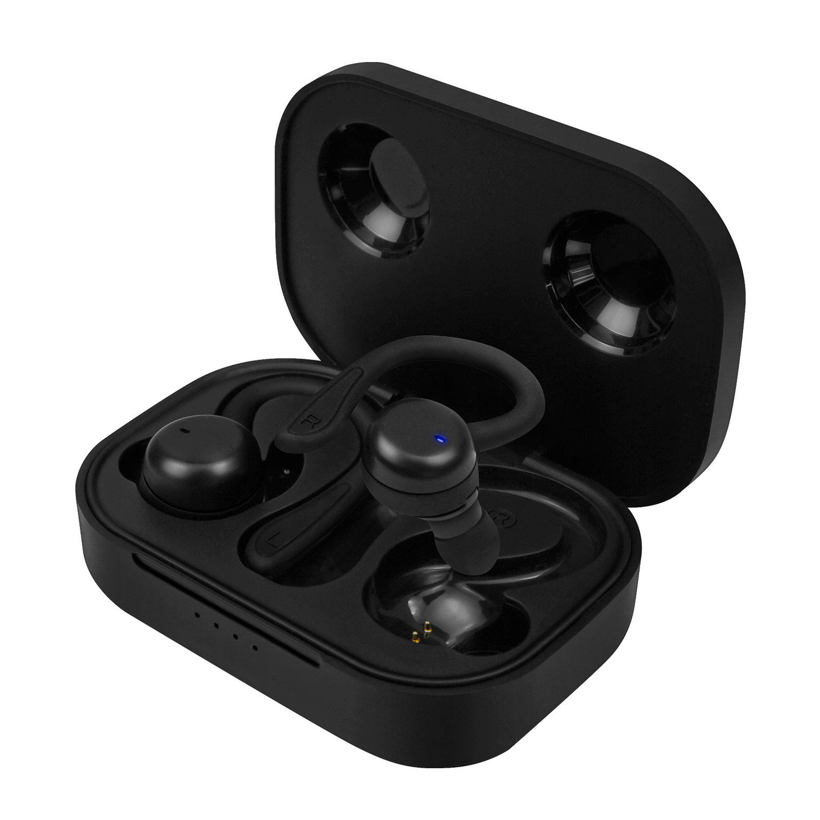 Su estuche con fijación magnética ofrece una carga segura y eficiente, con una capacidad de 200 mAh, pensado para acompañarte durante todo el día. Además, está diseñado para alojar los auriculares con cualquiera de sus accesorios puestos.