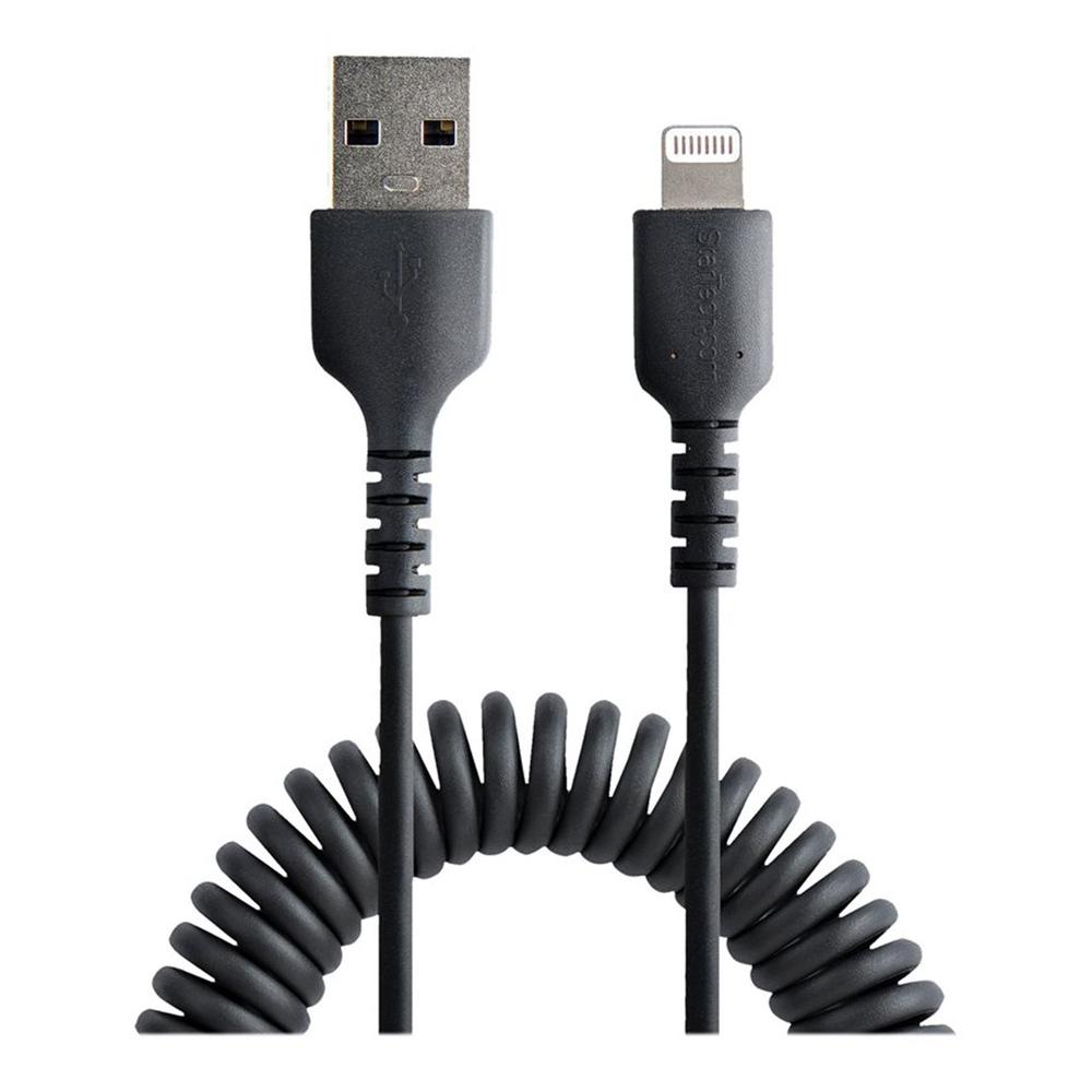 El cable StarTech.com USB a Lightning rizado de 50 cm es una solución práctica y duradera para la carga y sincronización de dispositivos Apple. Diseñado para ofrecer comodidad en espacios reducidos, su formato enrollado evita enredos y mantiene el escritorio o el coche ordenado. Gracias a su certificación MFi, garantiza compatibilidad total con iPhone, iPad y otros dispositivos Lightning.