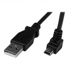 Este cable incorpora un conector Mini USB tipo B en ángulo de 90 grados hacia abajo, ideal para conexiones en espacios reducidos o para evitar tensiones innecesarias en el puerto del dispositivo. Su diseño ayuda a mantener una instalación más ordenada y segura.