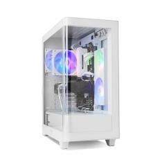 Con un acabado en color blanco y materiales de alta calidad como SPCC, acero y vidrio templado, la Hummer Ether destaca por su panel lateral curvo que permite mostrar todo el interior del equipo con estilo. Su estructura tipo Midi Tower ofrece espacio suficiente para componentes de alto rendimiento y una excelente organización interna.