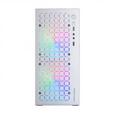 Minitorre compacta y funcional, diseñada para setups de pequeño tamaño sin comprometer características esenciales. Con una ventana lateral completa, iluminación RGB fija en los ventiladores y compatibilidad para placas base MicroATX y Mini-ITX, esta minitorre es ideal para configuraciones eficientes y modernas. Su diseño optimiza el espacio interno, permitiendo la instalación de hasta 6 unidades de almacenamiento y soporte para componentes esenciales.