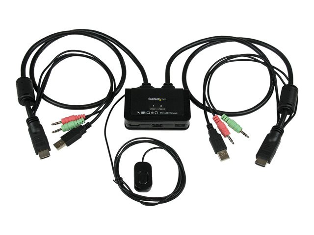 StarTech.com Conmutador Switch KVM 2 puertos HDMI USB Audio Mini Jack con Cables Integrados Sin Alimentación Externa – 1080p – Conmutador KVM / audio – 2 x KVM / audio – 1 usuario local – sobremesa
