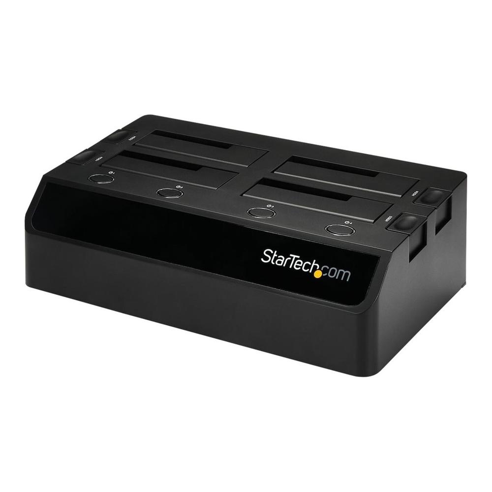 La estación de acoplamiento **StarTech.com de 4 bahías** es una solución profesional y versátil para quienes necesitan gestionar varias unidades de almacenamiento SATA de forma simultánea. Ideal para entornos de trabajo que requieren tareas de clonación, respaldo, recuperación de datos o pruebas de discos, este dock permite conectar hasta **cuatro unidades SATA de 2,5″ o 3,5″** con total facilidad gracias a su diseño **hot-swappable** y su conexión **USB 3.0 de alta velocidad**.