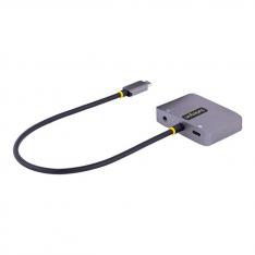 El **adaptador USB C a HDMI/VGA de StarTech.com** es una solución de conectividad compacta y potente, diseñada para ampliar las opciones de visualización de tu laptop o dispositivo compatible. Con soporte para resoluciones de hasta **4K a 60 Hz**, este adaptador te permite conectar tu dispositivo a pantallas externas mediante **HDMI** o **VGA**, y disfrutar de un sonido de alta calidad a través de su **salida de audio de 3.5 mm**. Además, incluye **USB-C Power Delivery 3.0**, permitiéndote cargar tu dispositivo mientras usas el adaptador, todo sin necesidad de complicados cables adicionales.### Conexión versátil y alta resoluciónEste adaptador multiport tiene múltiples salidas, permitiéndote conectar tu dispositivo a **pantallas HDMI** o **VGA**, ideal para diferentes tipos de monitores y proyectores. Soporta **resoluciones de hasta 3840 x 2160 a 60 Hz** a través de HDMI, mientras que la salida VGA alcanza resoluciones de hasta **1920 x 1200 a 60 Hz**. Además, es compatible con **HDR**, ofreciendo una experiencia visual de mayor calidad con colores más vibrantes y detalles más nítidos.- Resolución máxima HDMI: 3840 x 2160 a 60 Hz – Resolución máxima VGA: 1920 x 1200 a 60 Hz – Compatible con **HDR** para colores vibrantes y detalles nítidos### Alimentación y carga mediante USB-C Power Delivery 3.0El **USB-C Power Delivery 3.0** integrado permite una carga eficiente de hasta **100 W**, lo que te proporciona una **alimentación continua** para tu dispositivo mientras lo conectas a una pantalla externa. De este modo, no tienes que preocuparte por desconectar el adaptador para cargar tu laptop u otro dispositivo, facilitando el trabajo en entornos donde la movilidad es clave.- Suministro de energía de **100 W** (paso a través) – Compatible con **USB Power Delivery 3.0** – Carga mientras usas el adaptador sin interrupciones### Conectividad de audio y facilidad de usoGracias a su **salida de audio de 3.5 mm**, este adaptador también te permite conectar altavoces o auriculares, brindándote una solución todo-en-uno para multimedia. El diseño **Plug and Play** hace que la instalación sea rápida y sencilla, sin necesidad de controladores adicionales. Simplemente conéctalo a tu dispositivo compatible y comienza a disfrutar de tu configuración de pantalla extendida.- Salida de audio **mini-phone estéreo de 3.5 mm** – **Plug and Play**: No requiere instalación de controladores – Cable USB-C integrado de **30 cm** para fácil conexión —