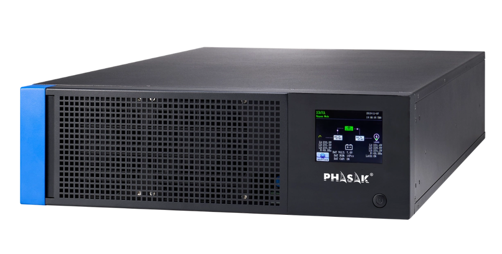 El PHASAK TITAN PH 9382 entrega 20 kVA / 20 kW con Doble Conversión Real y control DSP, aportando protección premium para CPDs, salas de control e infraestructuras críticas. PF=1.0, formato rack 19? y pantalla táctil con rotación automática.