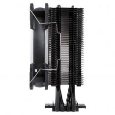 Fabricado con heatpipes de cobre y aletas de aluminio para una disipación eficiente. Dimensiones del cooler: 120 x 73 x 155 mm. Peso total: 830 g. Alimentación mediante voltaje de 12V DC.